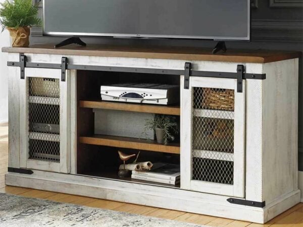 Sitting around the living room watching everyone’s favorite films or listening to some music as you sit back and relax after a hard day’s work can be one of life’s great pleasures. You will find the best selection of entertainment furniture that will highlight your tech. So you can just sit back in comfort and enjoy your TV. You don’t have to compromise on style when it comes to the entertainment center! We have TV stands and consoles that are just as beautiful as they are functional. You get the storage space for hiding away electronics with built-in interior shelves and drawers. Plus we have options for every TV size, from less than 40″ to 60″+. There are also corner media cabinets that are shaped to maximize storage and space for a corner spot. And you’ll find every color finish from dark espresso wood to chic gray to distressed whitewash. The selection of entertainment is perfect for the living room as well as bedroom and even a media room. You can get a small TV stand to put in the corner of the master bedroom or guest room, plus you’ll also find large wall units that can store electronics as well as decor. Then complete the room with the perfect sofa, sectional, recliner, chair, and end tables! Our designers can help you pick out the console that makes your room more beautiful and gives you all the storage you need. With built-in drawers and shelves, you won’t have to look at piles of DVDs or tangled electronics chords on the floor. It’s easy to keep you home neat and tidy when you have the right tools for the job! A quality media center a great way to start organizing your home!